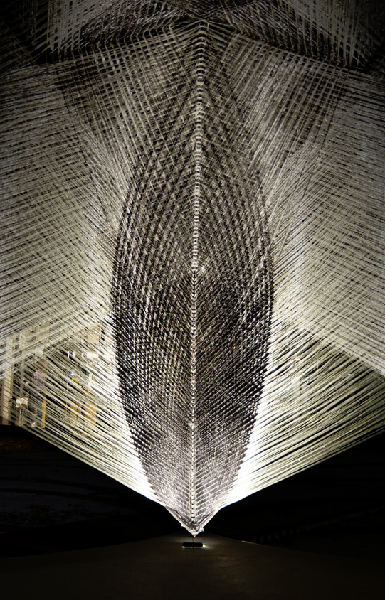 AE Interests: Double curved shape pavilion, entirely robotically fabricated from carbon and glass fiber composites, directional stress distributions with unidirectional layer structure, anisotropic fiber for directed load transfer, fiber optic sensors continuously monitor the stress and strain variations