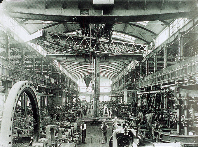 AE Interests: Self-taught architect Behrens created the large, open aired rectangular floor plan with the factory’s assembly stations in mind. The factory is held up by 22 steel mainframes wrapped in cast-in-place concrete and floor to ceiling walls of glass, allowing the industrial structure access to the outdoor light . “A veritable cathedral of industry.”