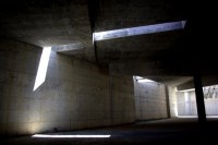 AE Interests: In order not to obstruct the current, industrious surroundings this museum is completely below grade. The only parts of the building above grade are the translucent cubes that provide light and conceal the mechanical systems.