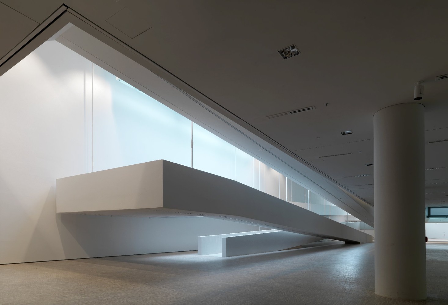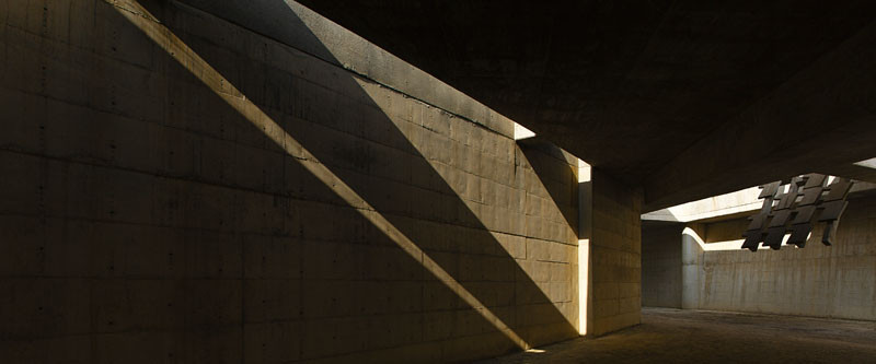 AEInterests: The museum gets its name from the sea dunes which it was integrated into.In collaboration with the School Of Architecture, Tsinghua University, China for lighting design, the concrete cavities that make up ten underground galleries and a cafe are connected to the outside world by skylights and glass curtain walls oriented towards the sea. The concrete shell was hand shaped onto a wooden strip framework and left in its irregular texture to inform viewers of its construction process. By placing the museum underneath the dunes, there is no need for an air conditioning system due to the sand’s thermal protection. Instead there is only a zero-emission heating system for the winter.