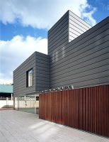 AE Interests: strategic use of longitudinal corridors for lighting, contemporary, form follows function, street facade predominately constructed of pre-cast concrete panels