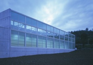 AE interests: Glass walls able to withstand harsh weather conditions, complex structure, blends in during the day and is illuminated at night, base formed of prefabricated slate slabs