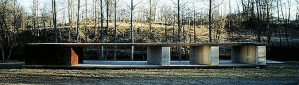 AE Interests: flat roof, rectilinear, glass/concrete/wood structure, an optimistic image of death (a white box somewhere between heaven and earth)