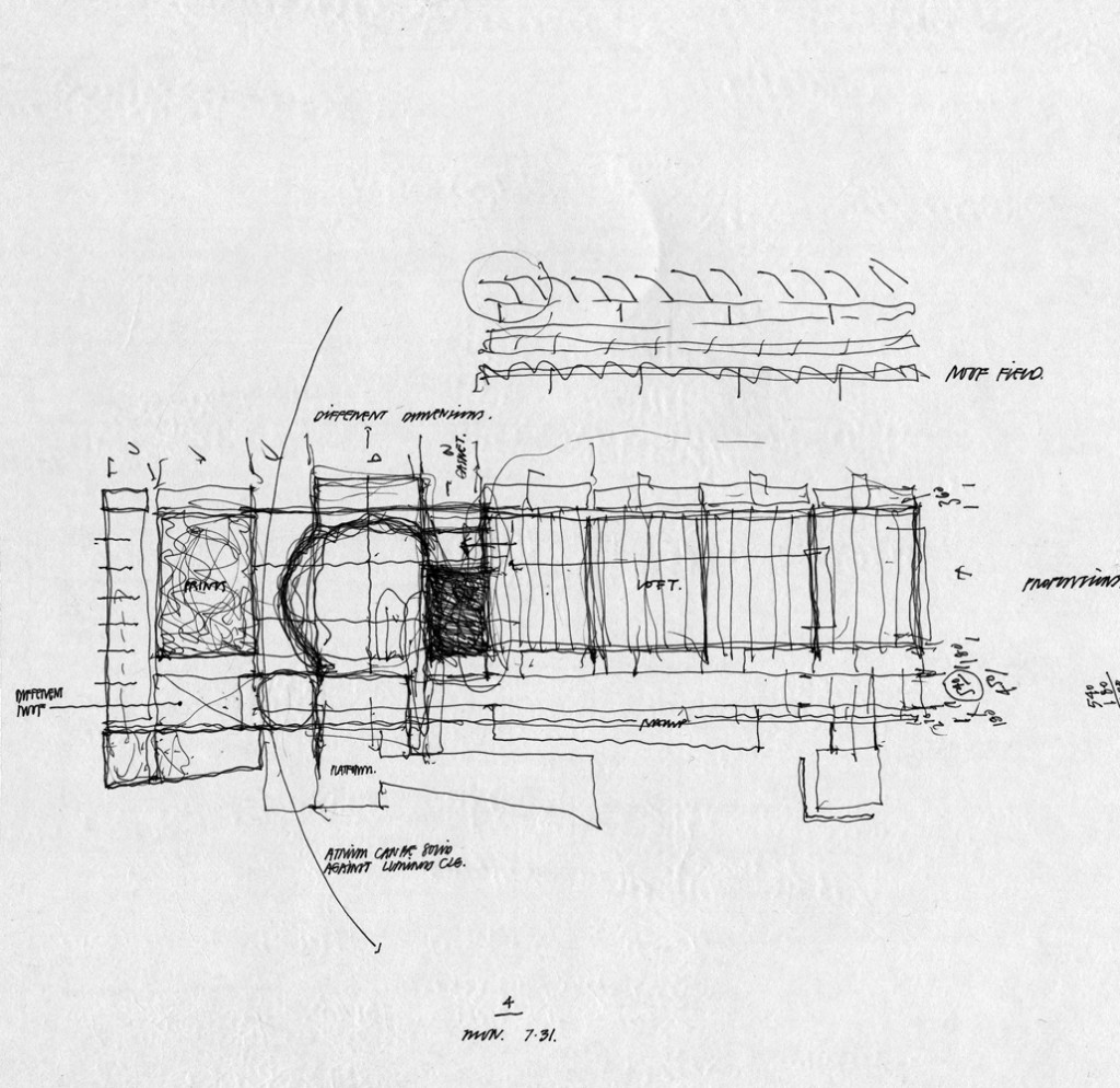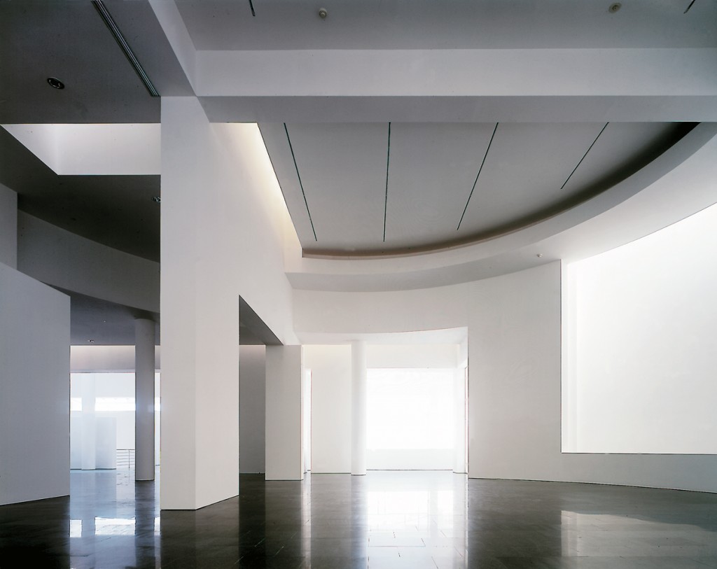AE Interests: stark contrast to Barcelona’s Gothic Quarter, top lit through louvered skylights, entrance through cylindrical gallery, natural light screened by external louvers