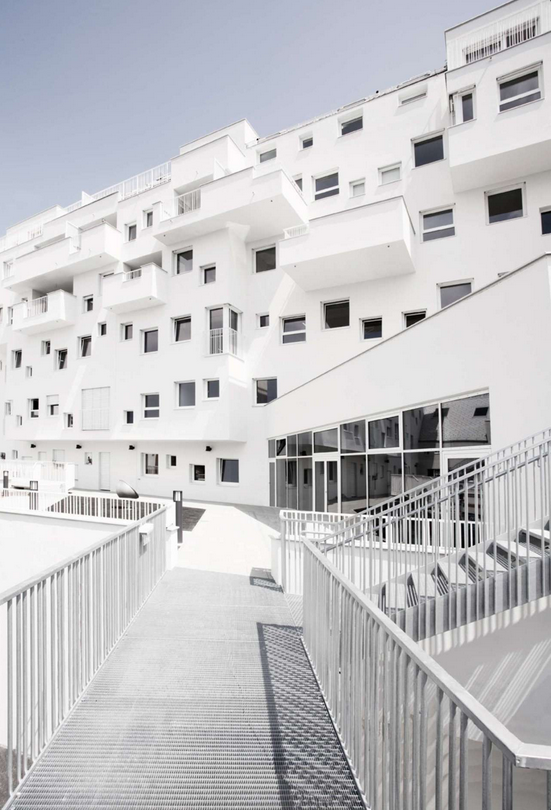 AE Interest:The two open, airy blocks offer views from all sides. All apartments have an orientation to the sun and a view of the park with the perforated roof, which is repeated at the ground floor, forming two courtyards that offer light, view, and access to the apartments on the first level. The garden offers protection from rain and wind.