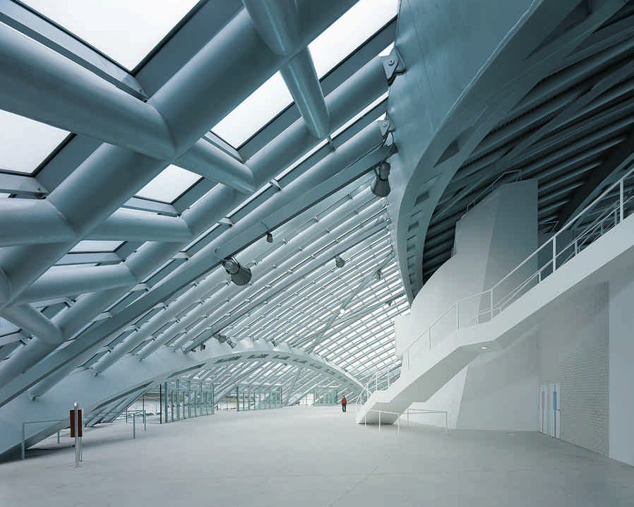AE Interest: Oval ribbed bowl structure is a landmark to otherwise underdeveloped area; Suspended roof structure minimizes extra support below; Designed to host 2009 World Men’s Handball Championship, but flexibility of grandstand allows for use of any event