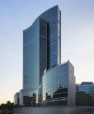 AE Interests: LEED Gold, high-rise, Italy’s tallest building, rainwater is recycled, built-in sunshading devices, asymmetrical main tower culminates in a sculptural, stainless steel spire, curved facade.