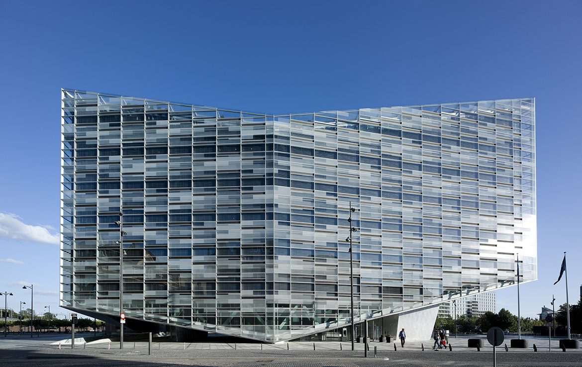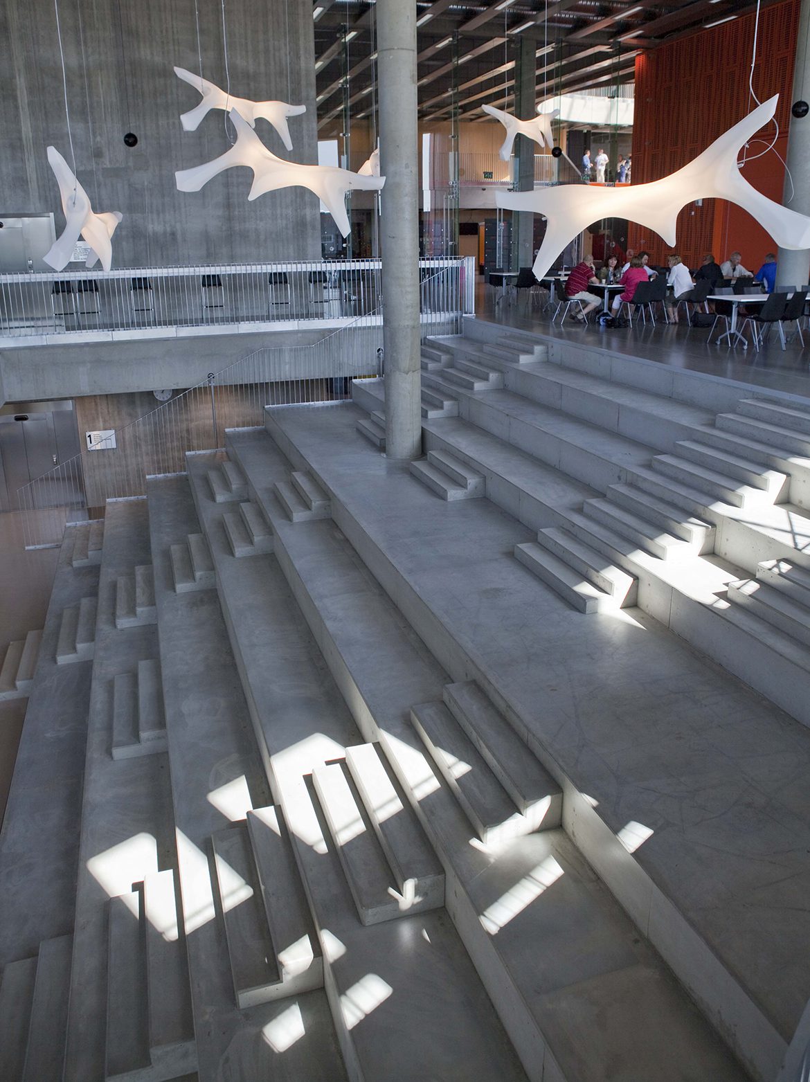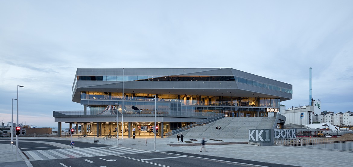 City of Aarhus Architecture Prize in 2015 and the largest library in Scandinavia [a]; library built to convert Aarhus harbor from an industrial harbor to cityscape [b].