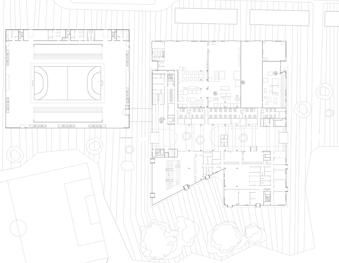 Vertically integrated design to promote interdisciplinary collaboration between the many programs offered [a]; natural light reaches far into the building and has proven to enhance the performance of students [b]