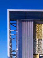 AE Interest: 75% recycling rate in overall project, custom water jet anodized aluminum panels on the main façade, double-pane windows, insulation made from recycled newspapers, water-saving dual flush toilets
