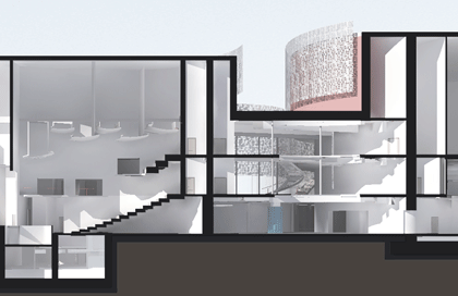 AE Interests: undulating curves, multipurpose, BIM, solar controls, perforated metal building envelope, glass technology, green roof