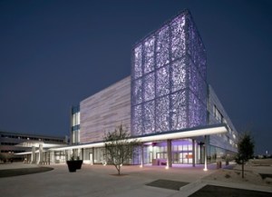 Design Concepts: Improve patient comfort with natural light, water features, colored light design and nature views. The Lantern of Hope is an open air entry to the building that is illuminated at light with LEDs.