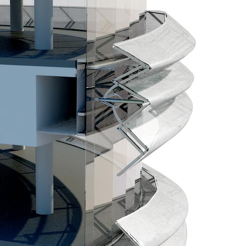 Design Concepts: Research and development facilities in three high-rise towers arranged around a dynamic central atrium to increase collaboration. Shading ribbons respond to solar exposure to alter the internal heat production.