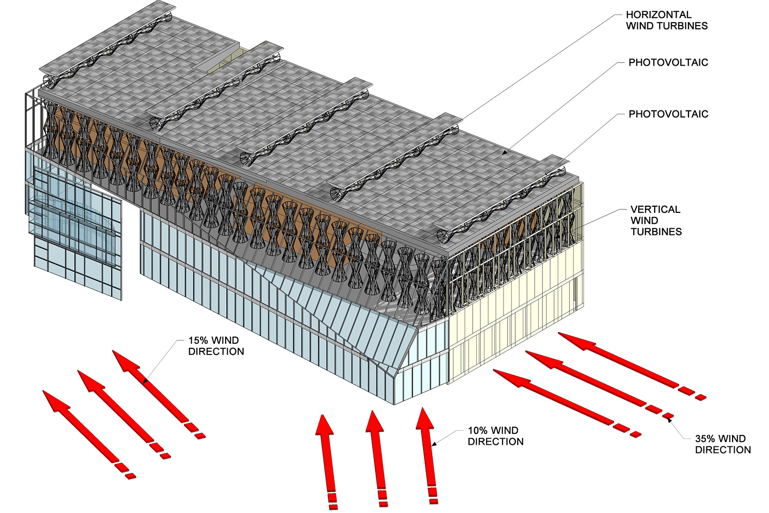 AE Interests: An integrated, hybrid solar array and wind turbine installation can generate up to 227,000 kWh/year or 7% of the building’s energy need. The building features a state-of-the-art raised flooring system incorporates the building’s data and ventilation infrastructure and reduces heating, cooling and ventilation energy costs by 51 while maximizing daylight harvesting and as a result it saves electricity and minimizes artificial lighting. 525 Golden Gate carbon footprint is 50% less compared to other buildings of similar size