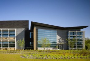 AE Interest: LEED Platinum, building oriented to reduce excess heat gain and thus less cooling need, shading devices capture sunlight to produce electricity for the building, HVAC system is constructed of chilled beams so the building is cooled through natural convection, roof-mounted solar panels, 39.4% more energy efficient than a comparable building.