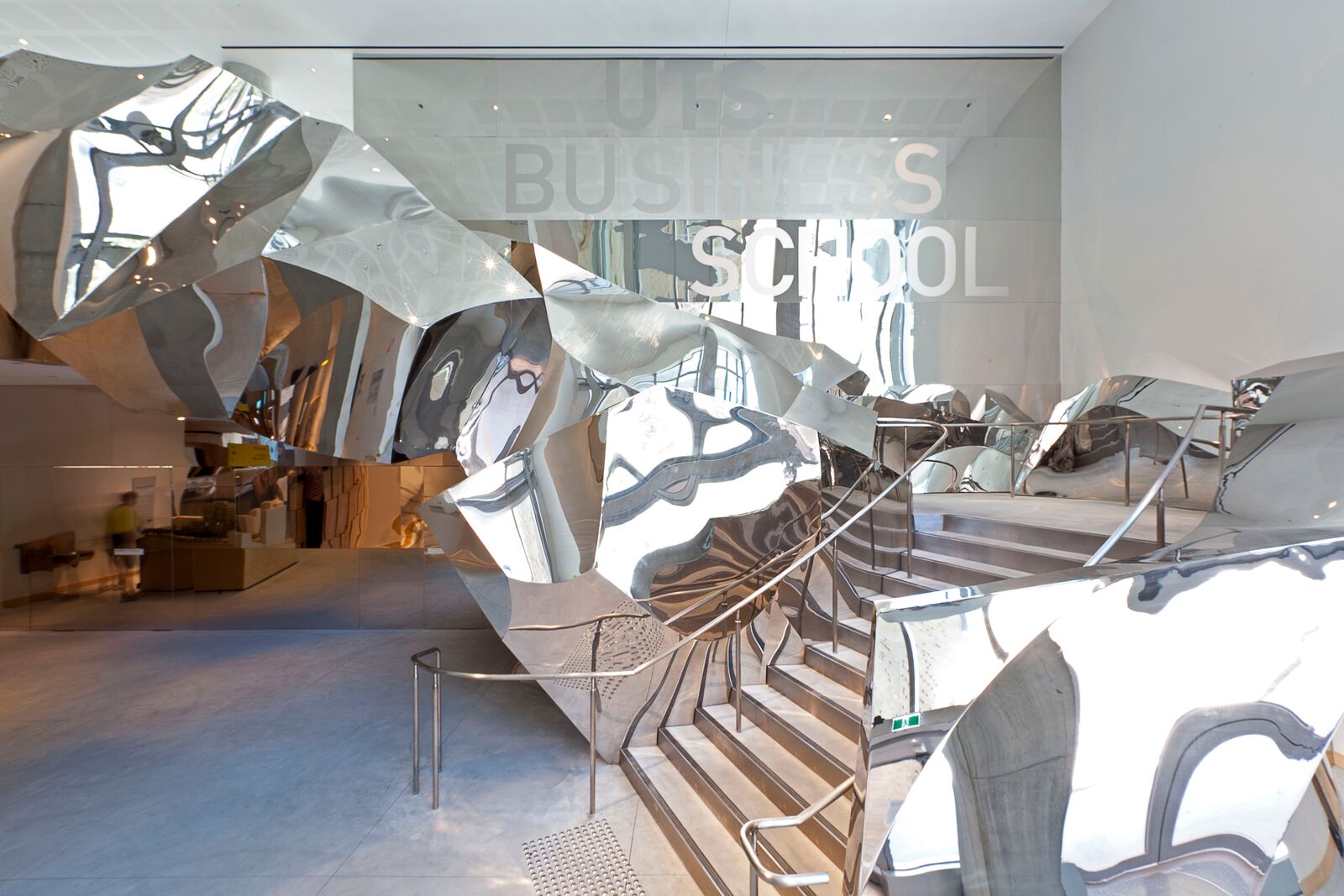 Internal maximized creative spaces for the university were designed first [a1]; Exterior curves created with 320,000 individual bricks, true to Australian heritage, while the glass reflects nearby buildings [a2]