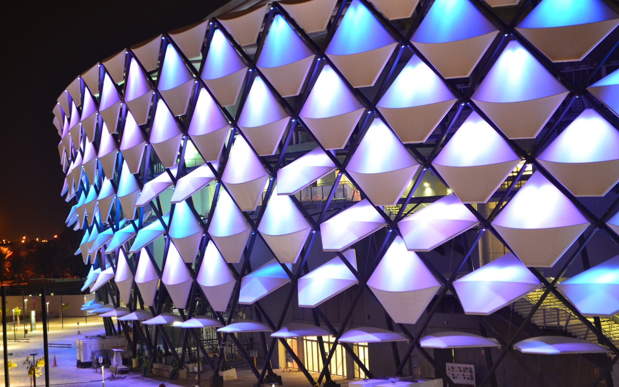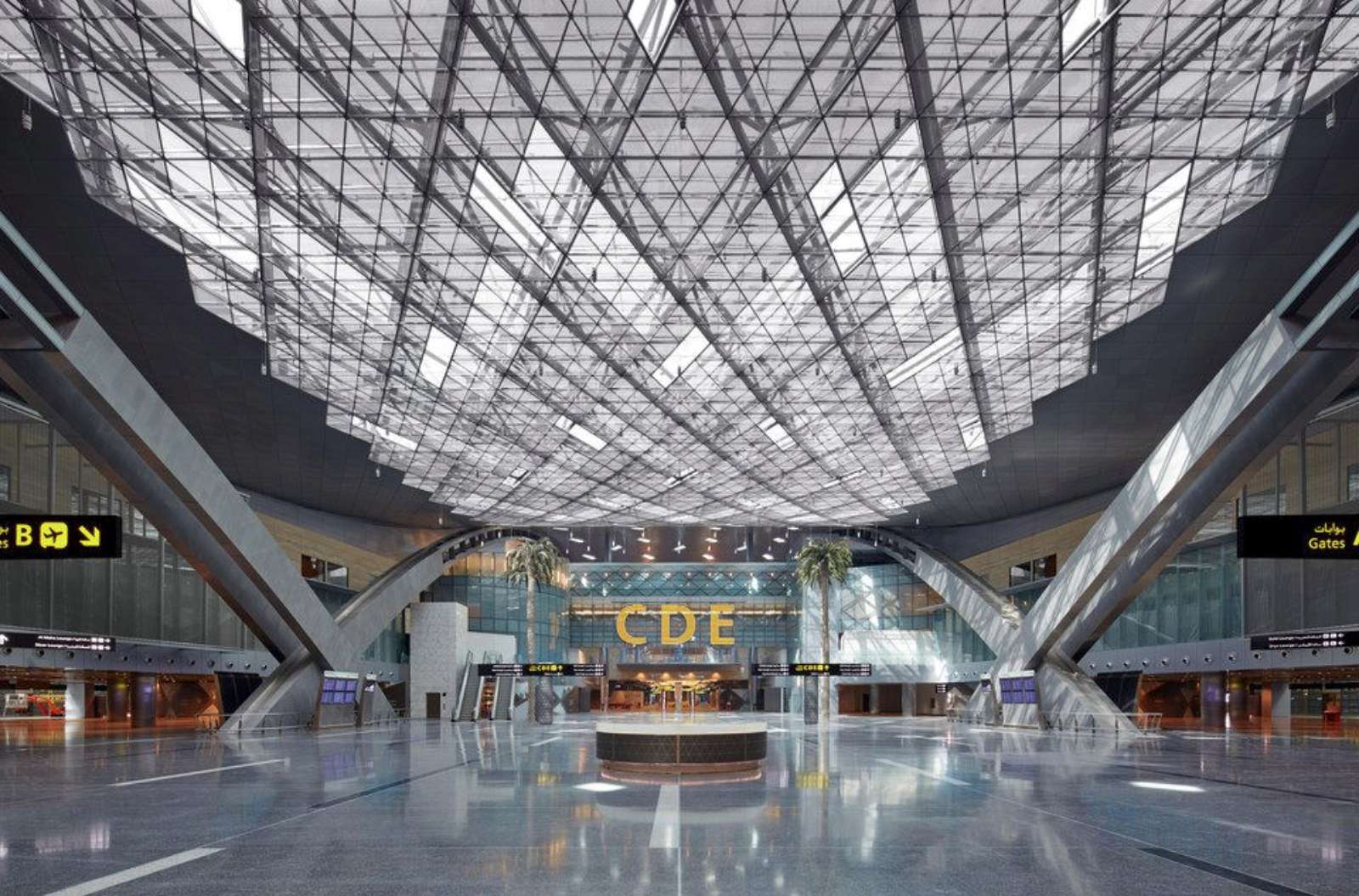 Luxurious but unadorned spaces to celebrate movement; open spaces and dramatic skylights with high performance glass and steel; form is reminiscent of ocean waves and sand dunes; central mosque, public art, 17 lounges, health club and spa