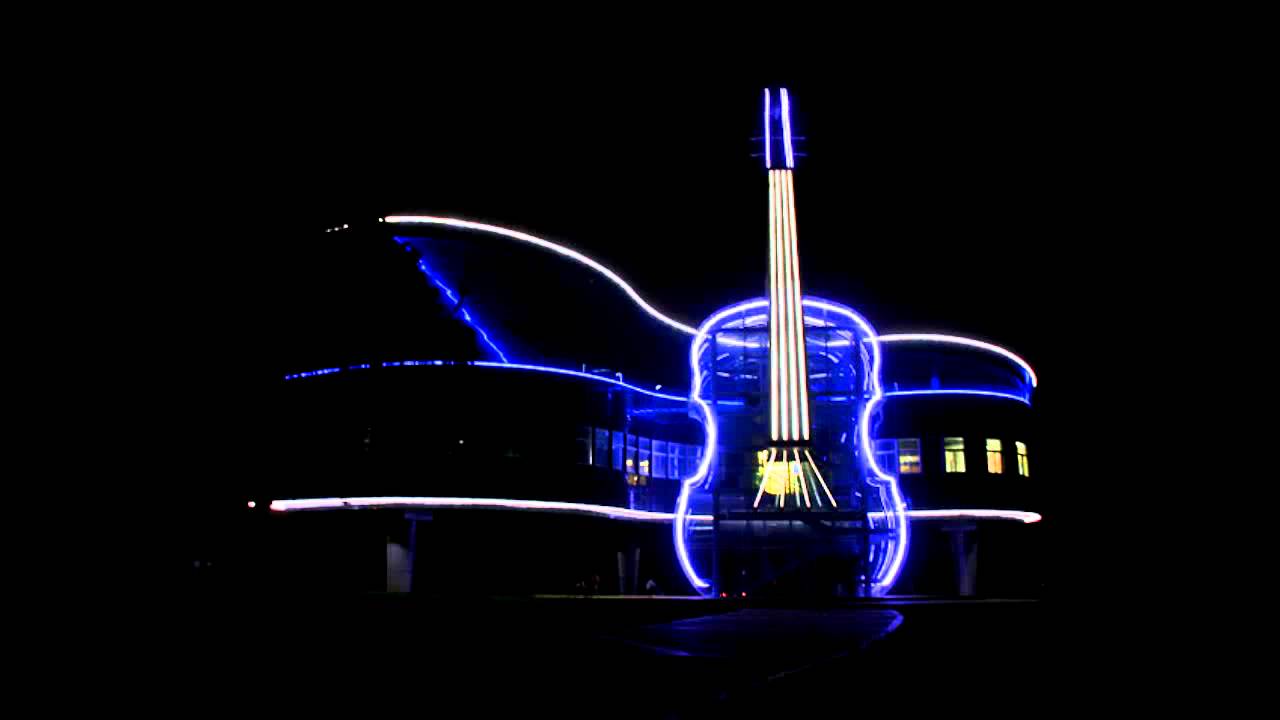 Contracting roof that works like a camera; exterior “wings” create a 16 story view of city from within; 360-degree halo video board; first LEED platinum stadium, reusing rainwater and incorporating solar cells [a1].
