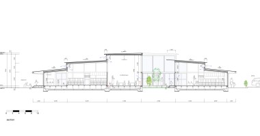 AE Interest: integrated childcare support facility, heavy emphasis on wood construction, radical use of apertures, terraced roofing, environmental matching