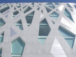 AEInterests: External skin covers the existing building, glass covered steel tube structure, wooden decks and grass areas on roof