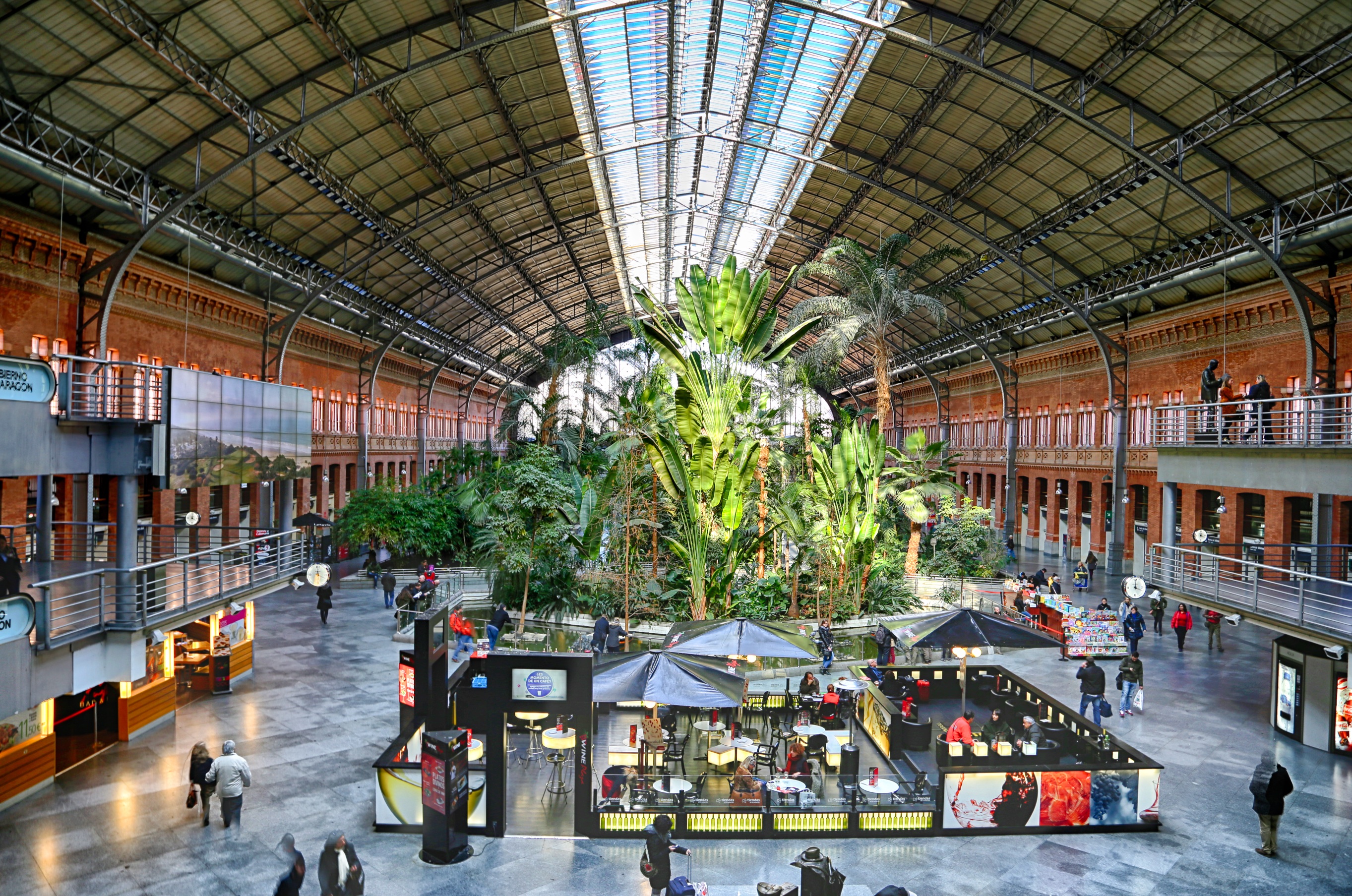 AE interest: Wrought iron trusses in main building deisgned with Gustave Eiffel, 4000 square meter botanical garden in main area, remodel work into existing historical site, largest railway station in Spain [a]