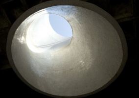 AE Interest: BREEAM rating = excellent; High recycled content; Locally quarried stone; Ground-source heating and cooling; Graywater recovery; 3 mullion types: largest made of basalt rocks around concrete cores carry roof load, medium-sized made of stacked stone, smallest with post-tensioned steel cables