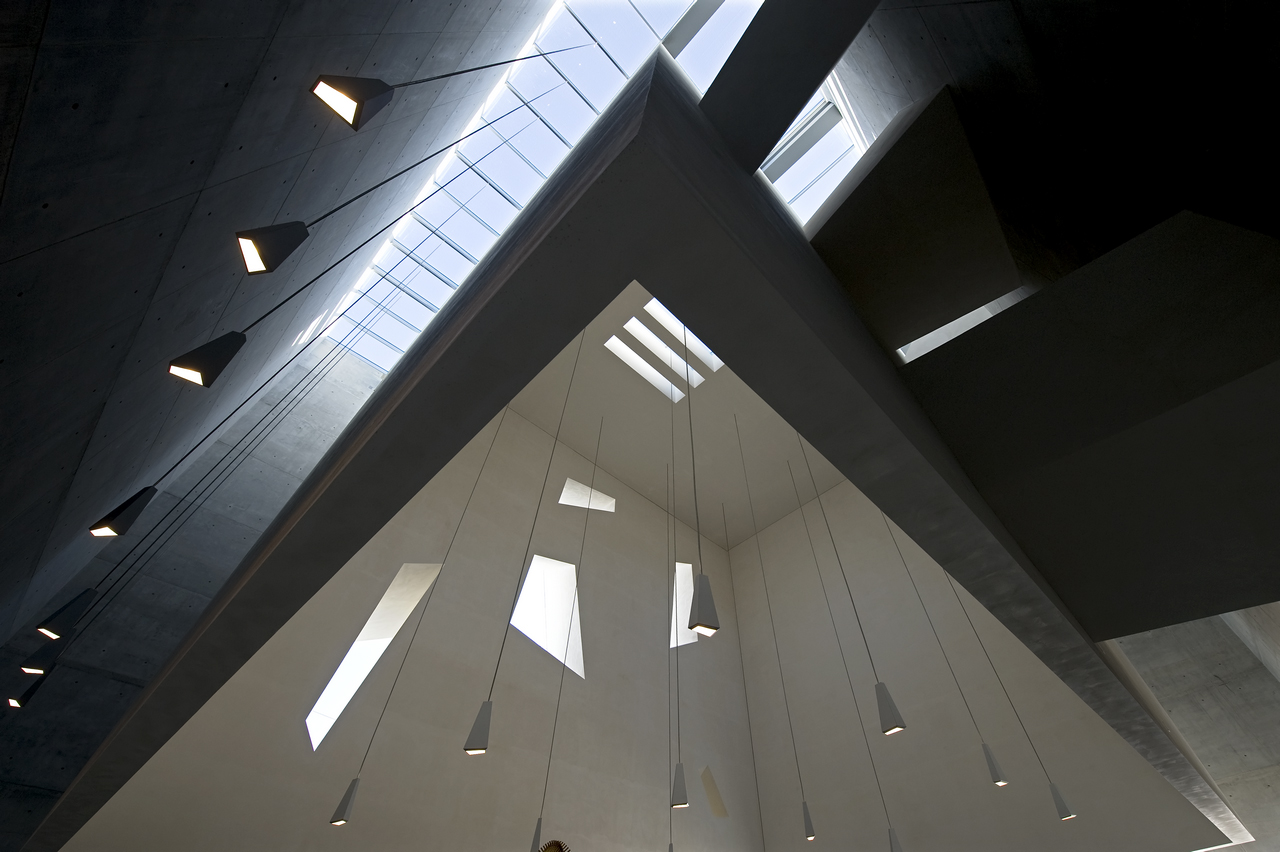 AE Interests: the parallelpiped building is created by the layering of various shaped glass and concrete placed on a monolithic base