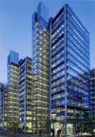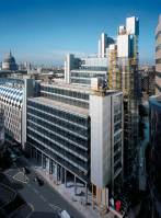 AE Interests: In situ concrete office wings, steel-framed service towers, fully glazed stairs and main office floors, triple-glazed active facade contains motorized blinds, external twin 72mm diameter Macalloy cross bracing, brightly coloured air intakes and extracts located at street level.
