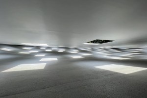 AE Interests: The museum’s design features submerged columns that support a floating, sash-like roof, forming a seamless boundary between the lake and land. Glass panels between the columns allow natural light, air, and even channel lake water into the structure, blending indoor and outdoor spaces. Varying ceiling heights and reflective surfaces create shifting patterns of light and water, emphasizing the museum’s connection to its lakeside setting.