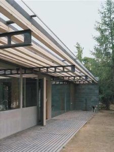 AE Interests: Curtain-like timber facade shields interior from the sun whilst still allowing views of the outside.