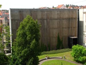 AE Interests: Known as the ‘Red Kilometer’, the main building wall serves a dual purpose of making the building stand out, while protecting the rest of the complex from the noise of passing vehicles.