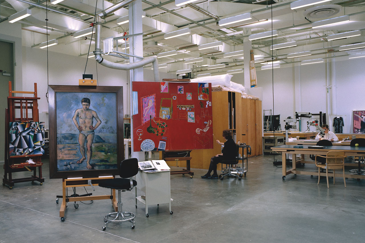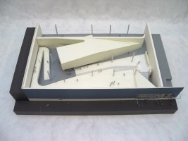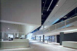 AE Interests: Designed for flexible gallery space — 21-ft-high ceilings in the galleries and only the perimeter wall is fixed, temporary walls can be custom-made for specific exhibitions. Blue stucco exterior, polished concrete floors, exposed ductwork on the ceiling. Double height and extra wide corridors in spaces for moving art.