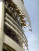AEInterest: bio-climatic design; implements idea of vertical landscaping; natural ventilated core; two spirals of green gardens are incorporated into side of building for both shade and natural beauty; outer shading windows on east and west sides