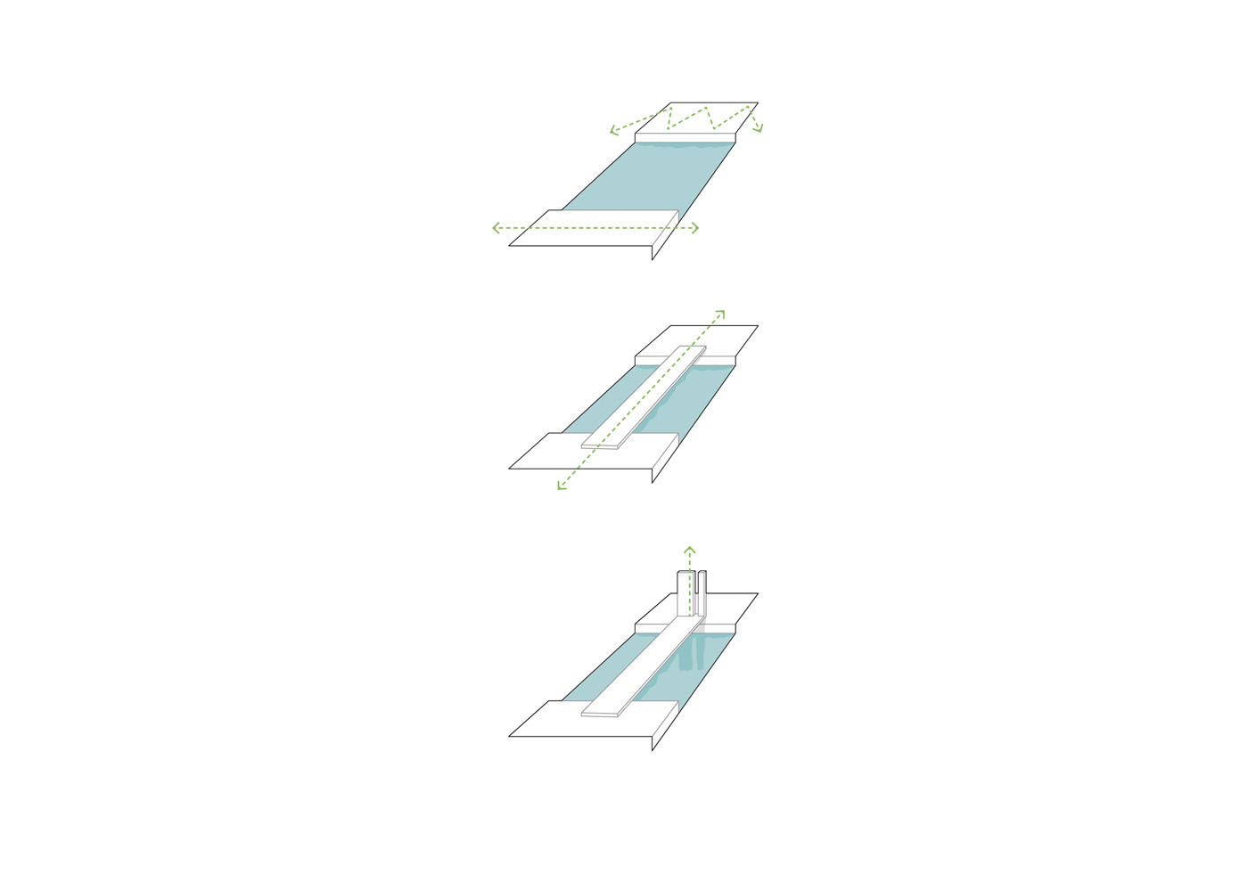The 150 tons steel bridge was built in a local shipyard and brought by boat to the site; Extremely thin (65 cm) for a bridge spanning over 40 meters [a]