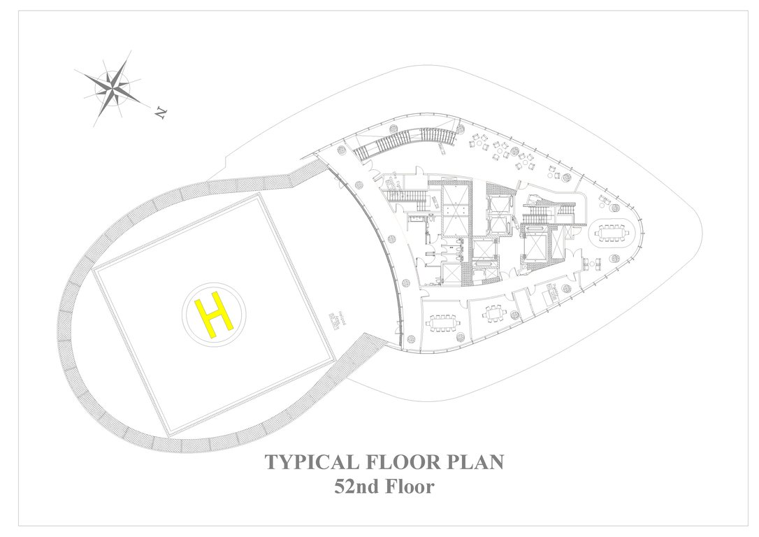 Helipad cantilevered out on 52nd floor. Steel girder and beam system used because most economical. Almost the size of the 52nd floor itself.