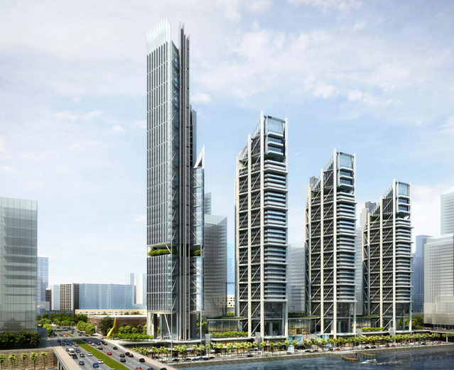 AE Interests: Each tower is diamond-shaped in order to provide maximum lighting, expressed structure.