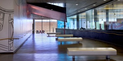 AE Interests: Created with large fluid spaces, perfect for dancing. Designed with two exterior facades, one of polycarbonate and one of glass that allow for viewing into, while still maintaining privacy. Has the first ever brown roof in the area, which helps with sustainability.