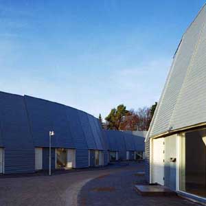 AE Interests: Elevations clad in sinus corrugated rhein-zink (continuous wide-strip casting and rolling mill) change colors according to the atmosphere from grey to blue.