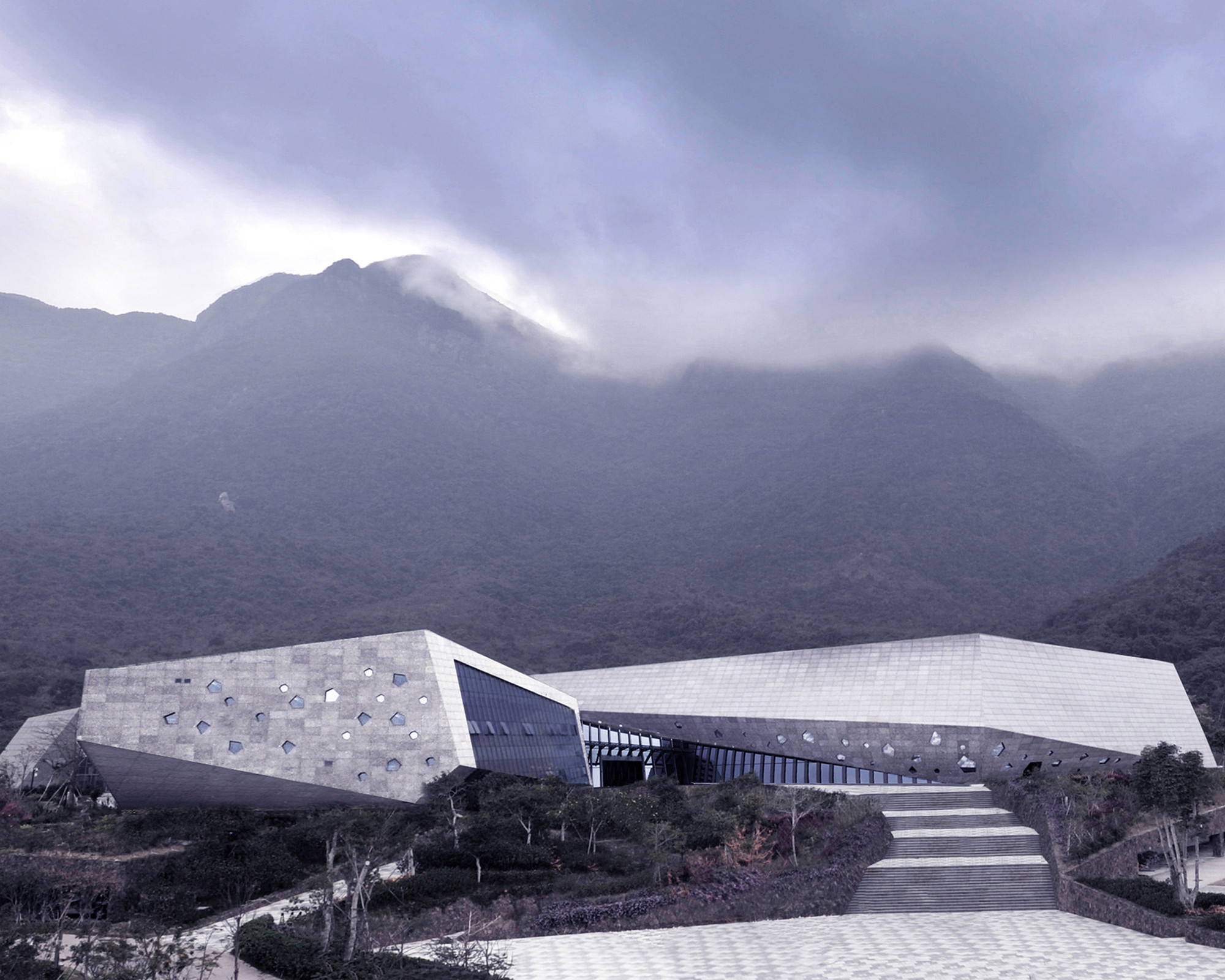 AE Interests: angular facades, constructed with natural stone, facade designed for moss, lichen, and plants to grow on, natural lighting.
