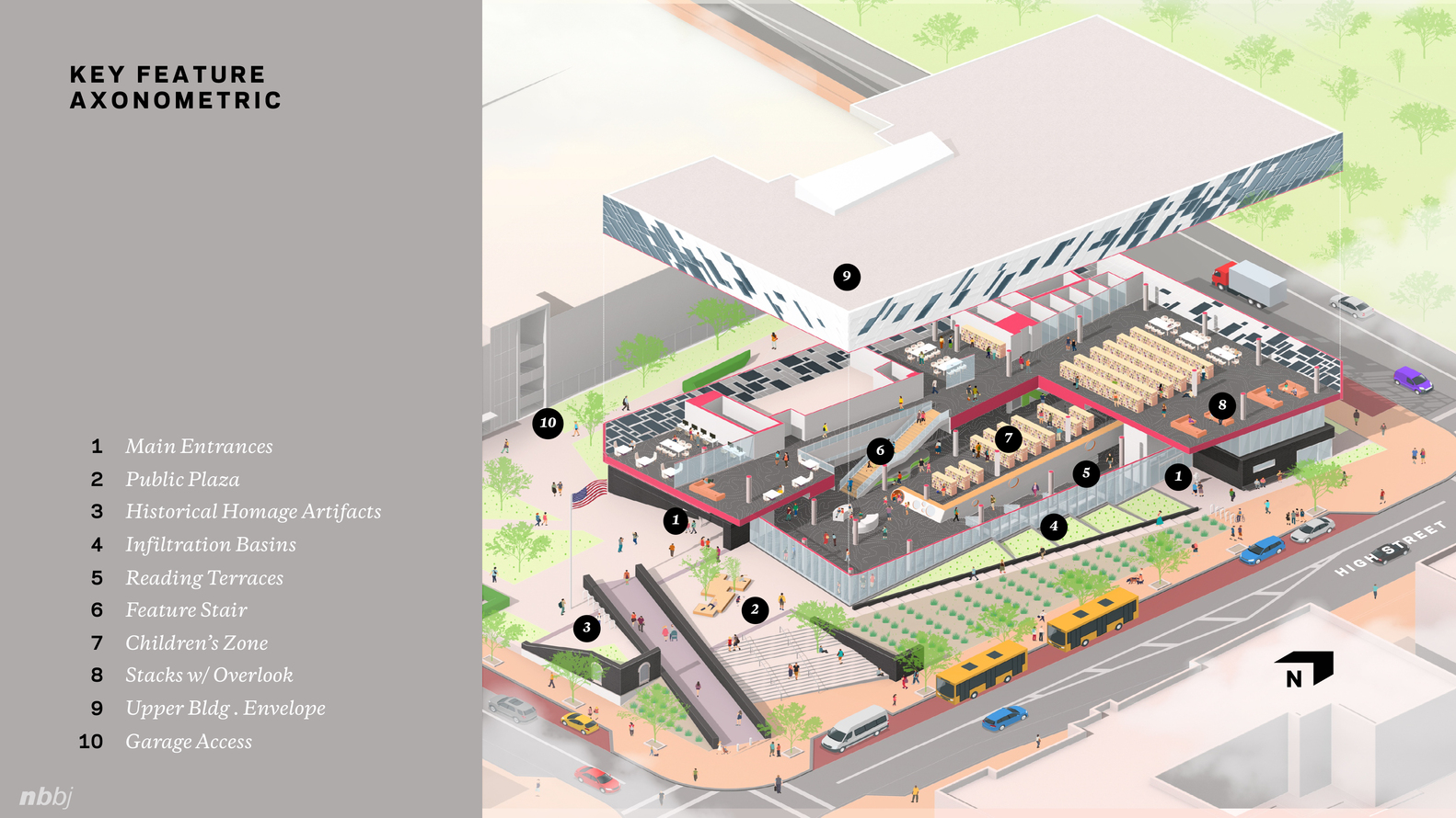 AE Interests: exterior glazing, landscape design, double height atrium, reduced footprint,