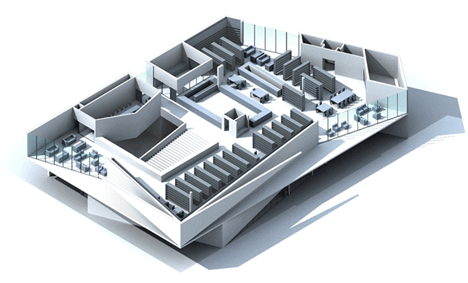 Other Interesting Info: Main faςade contains cubical pods above street, large atrium connects all floors to spark conversation.