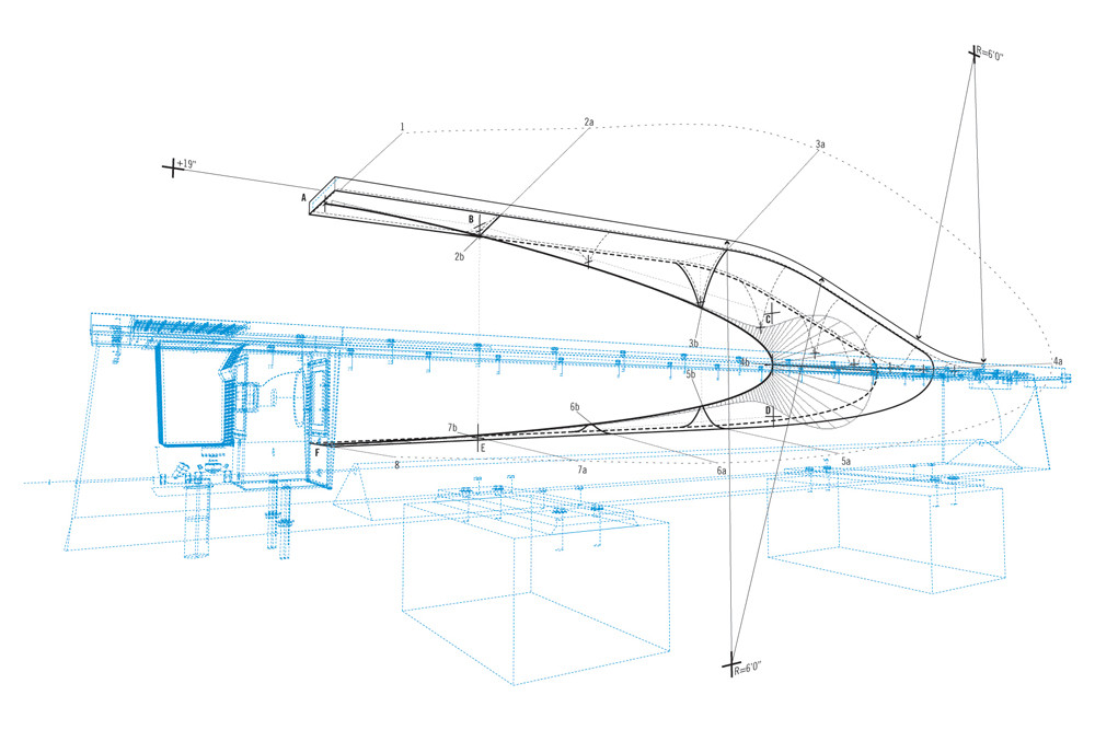 AE Interests: Sharp angular forms with 6 volumes to create smaller space and resemble 6-pointed Star of David, cast-in place concrete forms, ascending planes symbolizing hope and descending planes leading to isolated spaces
