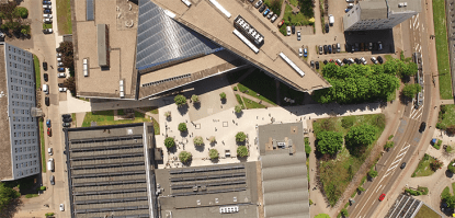 AE interests: Built on a triangular site based on a continuous concrete strip that was folded in size time to create each level of the library. The library features laminated timber staircases and a central atrium that creates a spatial continuum via its long, exposed, and uninterrupted diagonal steelwork on the floors and walkways. The atrium of the library contains a series of daylight spaces and central ventilation which creates a sense of transparency eliminating the boundary between the inside and outside of the building.