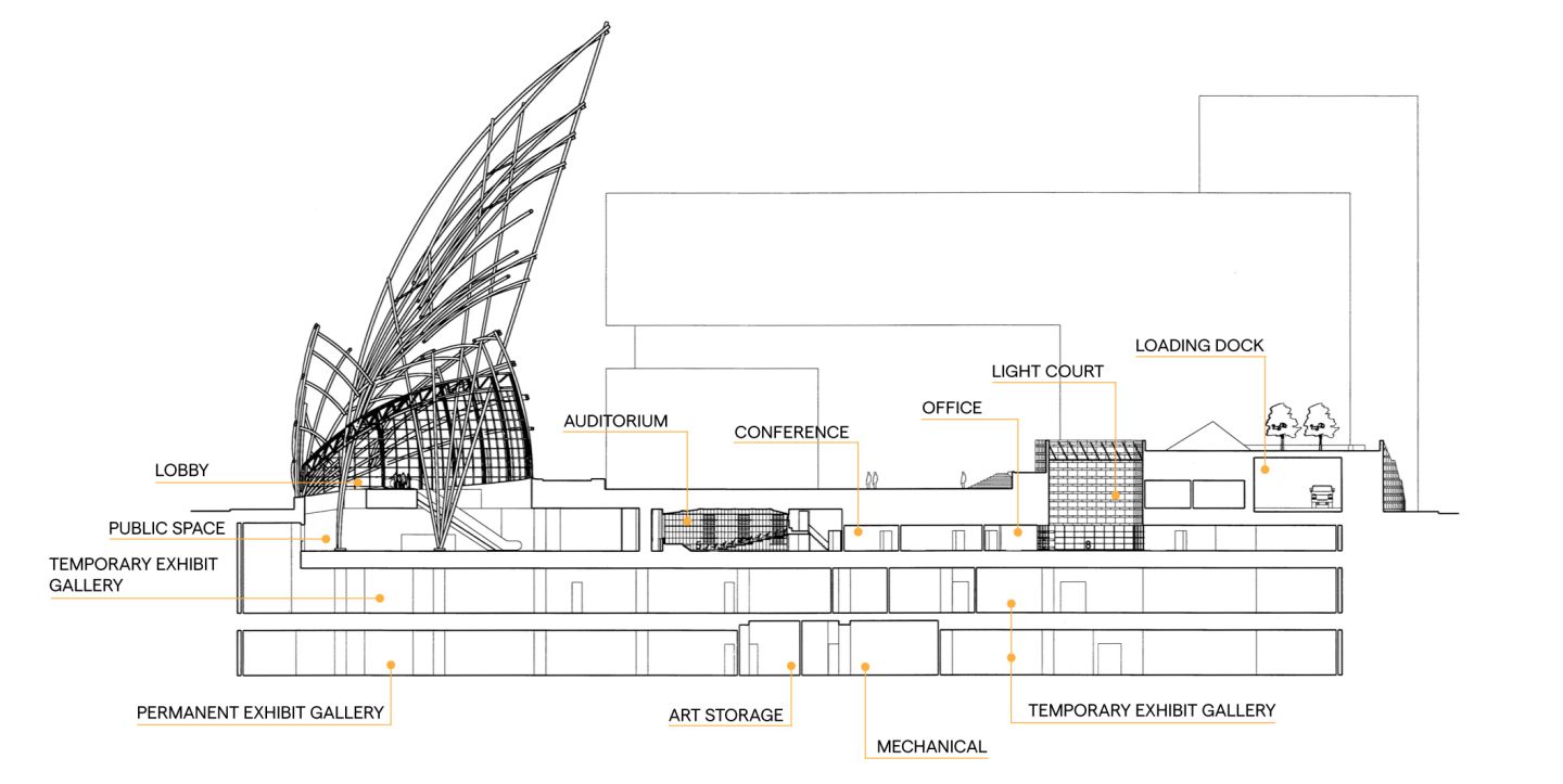 AE Interests: 16-acre art campus with a 56 meter tall tower. Sustainability provided through use of renewable energy in the form of solar panels. $175 Million budgeted for the tower construction alone. Tower consists of three sub-towers that are joined at each level by central slabs.