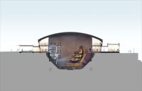 AE Interests: Museum built to host the hull of Henry VIII’s warship, designed from the inside-out to accommodate the environmental conditions needed in order to preserve the hull, the structure is like a jewel box with its most precious contents protected inside, [a] interior is completely dark with light only concentrated on objects on display and under walkway handrails, re-creates a claustrophobic atmosphere of the lower deck of a ship. [b]