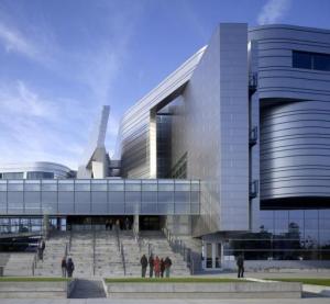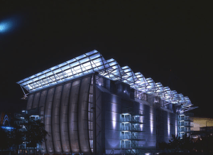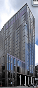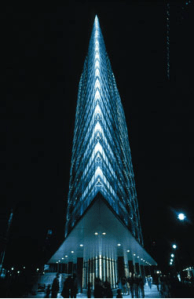 AE Interest: Twin towers stand strong, prominent, and bright. Triangular beams give the building an elevated feel. Use of glass allows for natural light.