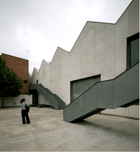 AE Interests: Exposed concrete design. Ando inspired the building to be “at one” with the sea, and built it to integrate the surrounding nature. Unique design of the elevator which is placed outside of the building.