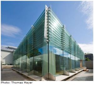 AE Interest: Curved Structural Shell, uses renewable energy, silk screened glass.