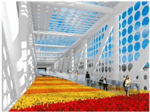 AE Interests: Transparent building skin and exposed structural elements to leave view corridors to mountains and sea. Also, will illuminate at night to represent the spectacle of the Games. The stadium also has a legacy plan to serve as a key stadium in the 2018 FIFA World Cup after it is used for the 2014 Winter Olympic Games.