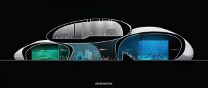 AE Interests: No piers were placed in water; minimal ecological footprint; helical steel structure with glass roof